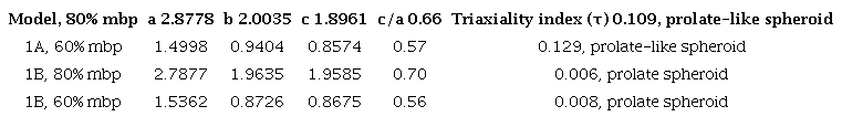 to evaluate the intrinsic shapes of our models. For this, we considered both the 80% and 60% of the most bound particles (mbp) in Table 2.