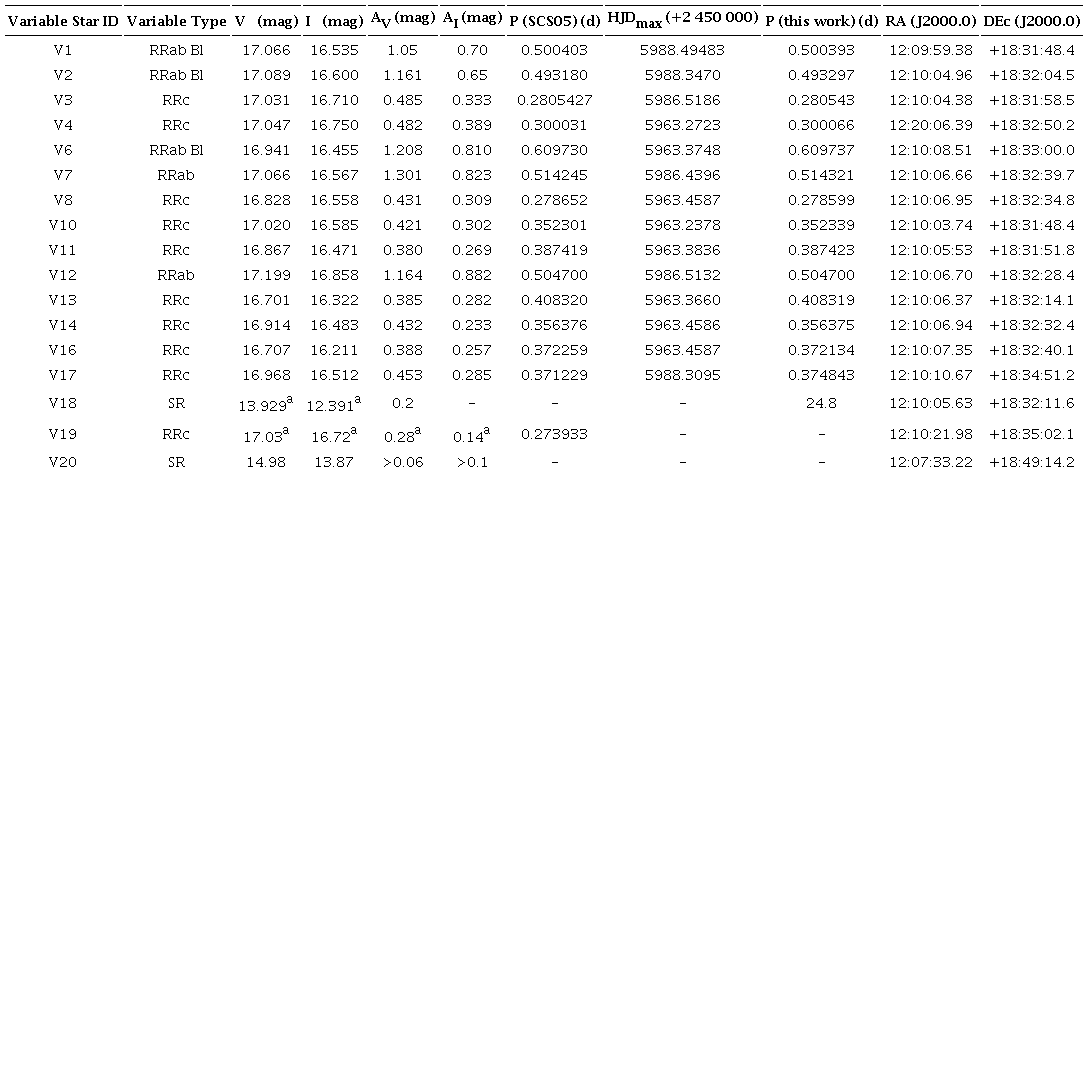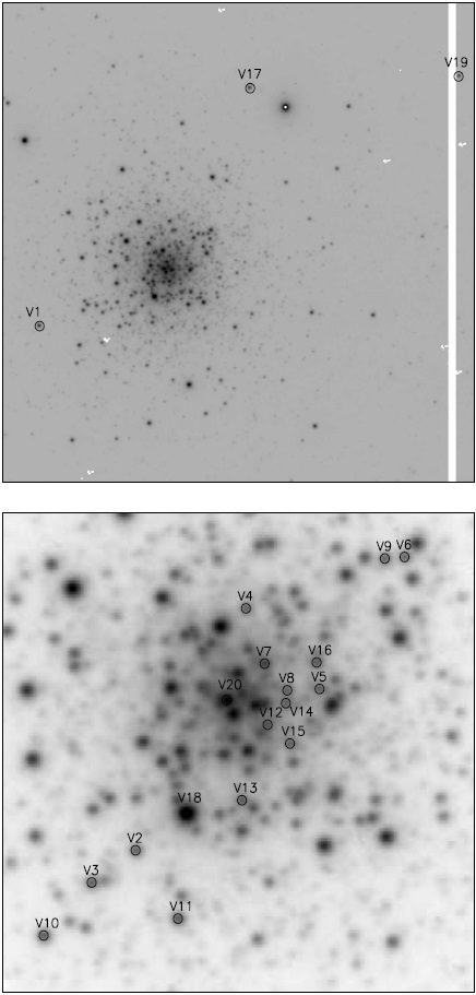 V19. This RRc star discovered by SCS04 is near the edge of our images and very near to a bad pixel column of our CCD chip, thus we were unable to secure any reliable photometry.