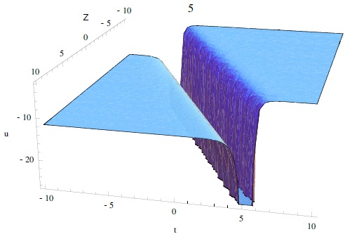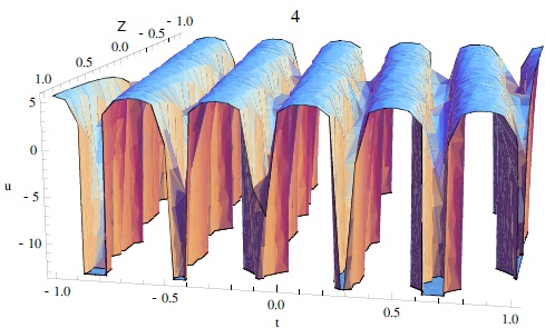 The extended HB is applied to give the traveling wave solutions for the KdV equation (Abdelsalam 2017; El-Wakil et al. 2007; Wang 1995). The obtained solutions cover many types of periodical, rational, singular and solitary wave solutions. As an example, the solution of equation (20) is a sinusoidal-type periodical solution shown in Figure 4. The solutions for equation (24) are of rational-type and the solution of equation (22) is a kink-type solitary wave solution. Note here that equations (23) and (31) are explosive/blowup solutions as depicted in Figure 5. The solution of equation (6) represents a soliton wave with amplitude ϕ0.