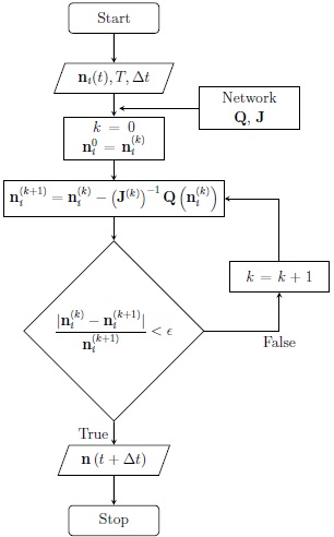 where Nit and β are chosen constants, and k is the current iteration number. We then recalculate the rates and Jacobians with the corrected densities , and repeat the process to obtain successively improved values for the time-advanced densities. This iteration is repeated until a convergence criterion: