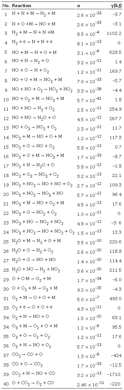 In order to study the formation of NO in these experiments, we applied KIMYA in two different ways: as a zero-dimensional model using the techniques shown in § 2 (using the experimentally determined time-evolution of the plasma/hot air and shock wave temperatures), and a gasdynamic model using the reactive flow equations described in § 4.