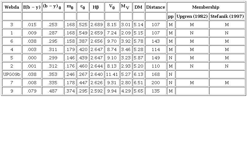 The main problem we tackled remains. From uvby − β photoelectric photometry determined from the average of all existing measurements, we derived reddening and distances to each star. We assigned membership from the coarse average of all of them. Our memberships agree with those determined by Upgren, Philip and Beaver (1982) from radial velocities, photometry, and spectral classifications for three of the stars and disagree for another three. There is agreement with some Stars (3, 4 6) that seem to conform a physical group; three more (1, 2, 5) have contradictory results. The WEBDA membership, on the other hand, assigns zero probability of membership to the cluster for all the stars.