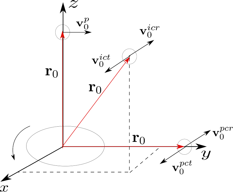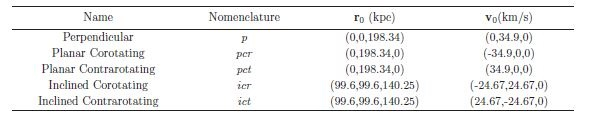In all simulations the host galaxy disk was always in the x−y plane with its angular momentum aligned with the z-axis. Based on the orbital parameters given in the previous paragraph, the merger was disposed in five different configurations. The only difference between each configuration is their location relative to the disc plane and its orbital motion direction relative to the disc rotation. The configuration parameters are shown in Table 1 and a schematic illustration of all of them is represented in Figure 4.