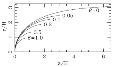 where we have assumed that . This solution has been previously derived, e.g., by Cabrit & Raga (2000).