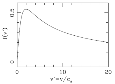 This function is shown in Figure 7, in which we see that it has a maximum value at . Therefore, the hydrostatic balance within the plasmon will be satisfied over all of its deceleration history for the case of a “cold plasmon” with (where c0 and ca are the isothermal sound speeds of the plasmon and of the environment, respectively).