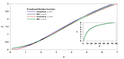 Artificial Neural Networks (ANNs) have proved to be a very promising tool that has been used in wide areas of scientific research and has found many applications to solve problems related to geophysics, engineering, environmental sciences, and astronomy [e.g., Weaver (2000), Tagliaferri et al. (1999), Tagliaferri and Longo (2003), Faris et al. (2014), Elminir et al. (2007), El-Mallawany et al. (2014), Leshno et al. (1993), Lippmann (1989), Zhang (2000)]. The great potential of ANNs is the high-speed processing provided by their massive parallel implementations (Izeboudjen et al. 2014). Nowadays, ANNs are mostly used for universal function approximation in numerical paradigms because of their excellent properties of self-learning, adaptability, fault tolerance, nonlinearity, and advancement in input to output mapping (Wang et al. 2018). In addition, ANNs are effective, efficient and successful in providing a high level of capability to handle complex and noncomplex problems in many spheres of life. Besides, ANNs are appropriate for modeling many physical phenomena and have been used widely to solve fractional and integer differential equations problems with different patterns for the ANN architecture [Raja et al. (2010), Raja et al. (2011), Raja et al. (2015), Hadian-Rasanan et al. (2020), Pakdaman et al. (2017), Zuniga-Aguilar et al. (2017)]. In addition, Ahmad et al. (2017) used artificial neural networks (ANNs) to compute the solution of Lane-Emden type equations. Recently, Nouh et al. (2020) presented a solution to the fractional polytropic gas sphere (first kind of the Lane-Emden equation); the results indicated that the ANN method is precise when compared with other methods.