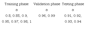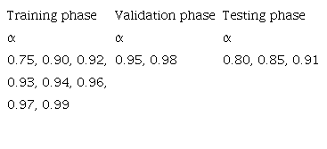 The learning rate η is chosen such that it is neither too large leading to overshooting nor very small leading to a slow convergence rate. The last part in Equation (36) is the momentum term which is affixed with a constant γ (momentum) to accelerate the error convergence of the back-propagation learning algorithm, and also to assist in pushing the changes of the energy function over local increases and boosting the weights in the direction of the overall downhill, Denz (1998). This part is used to add a portion of the most recent weight values to the current weight values. The values of the η and γ terms are set at the beginning of the training phase and determine the network speed and stability, see Basheer and Hajmeer (2000).The process is repeated for each input pattern until the output error of the network is decreased to a pre-specified threshold value.