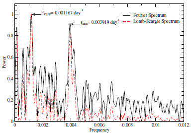 We recall that there is a huge disparity between the VLPP and all other periods. This lead CH2012 to seek a cause of the variable mass transfer rate and therefore of the disk brightness not related to the binary itself, but to propose instead a third body orbiting the binary.