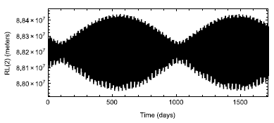 Where r12 is the distance between the two stars at a given time. Since we have that distance from our integration of the most efficient case, we can plot RL(2) as a function of time, as shown in Figure 5.