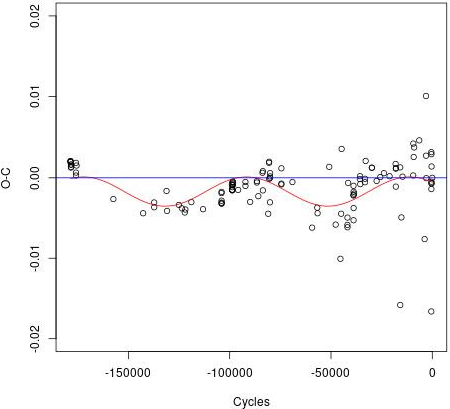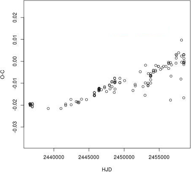In conclusion, there was a systematic improvement of the period, but not only that: Yang et al. (1992) postulated that the quadratic fit was much better, so the period was considered to be increasing at a rate of (1.3 ± 0.07 × 10−8 days/year) although they could not fit the curve well with the observations from 1985 and 1986.