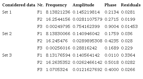 The sinusoidal function parameters are listed in Table 5. Accordingly, the period of the sinusoidal behavior is 10,247.8759 days or 28.1 years.