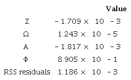 The goodness of the model is determined by the RSS residuals listed in Table 3.