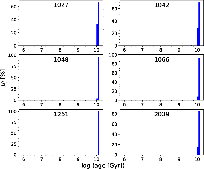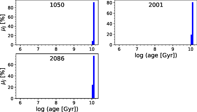 Since a composite stellar population can be seen as the sum of simple stellar populations (Bruzual & Charlot 2003), the SFH of a stellar population can be understood as the fraction of stellar mass produced as a function of time in the form of simple stellar populations. Therefore, the mass fraction µj provided by STARLIGHT plotted as function of the simple stellar populations ages can be considered as direct proxy for the output SFH (Citro et al. 2016).