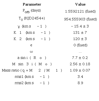We carried out spectroscopic observations of the system with the 1.5-m Russian - Turkish telescope and the Turkish Faint Object Spectrograph Camera (TFOSC1) at Tubitak National Observatory. Using the échelle mode of TFOSC, we achieve an actual resolution of R=λ/∆λ ≈ 3000 around 5500Å. The whole spectrum covers a wavelength interval between 3900 - 9100Å in 11 échelle orders. All spectra were recorded with a back illuminated 2048 × 2048 pixels CCD camera, which has a pixel size of 15 × 15 µm2.