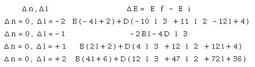 Notice that each initial state | n,li has 24 possible final states given the corrections proposed by this model. It is worth mentioning that this correction is very restrictive as the rotation is fully confined to one direction. Moreover, the energy constant associated with this rotational degree of freedom is greater than that found in any other direction.