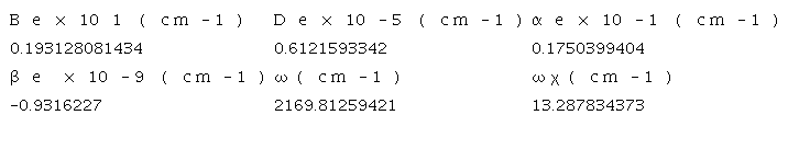 We apply the results found to the CO molecule, as shown in Figure 1. Molecular constants for the CO were taken from Le Floch (1991) and are reported in Table 3. Experimental measurements of these constants using a near-IR spectrophotometer were presented by Mina-Camilde et al. (1996).