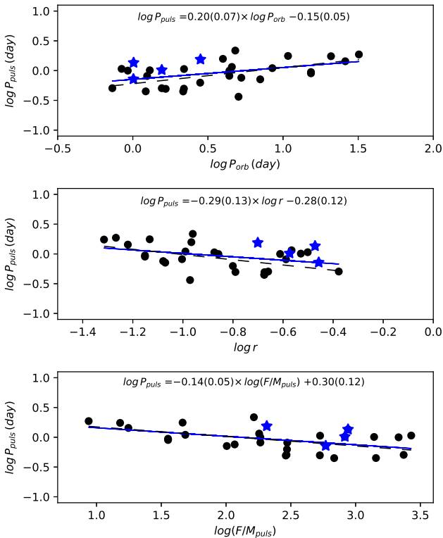 where G is the Newton’s gravitational constant, Ms is the mass of the secondary component, a is the semi-major axis of the system, Mpuls and Rpuls are the mass and the radius of the pulsating component, respectively (Çakirli & Ibanoglu 2016). In Figure 6, we show the pulsation period relations.