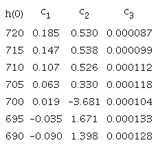 where x is the independent variable from known data, y is the dependent variable for the fitted curve and cn are the function’s parameters.