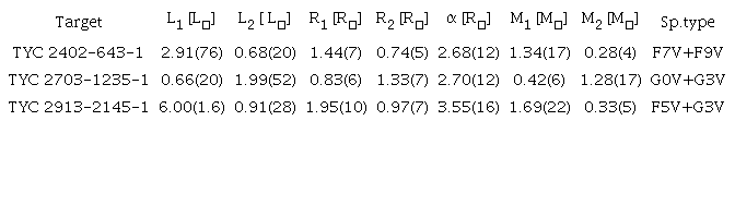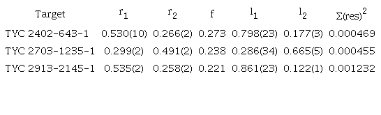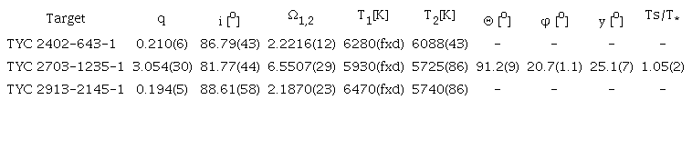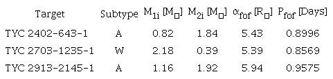 Key Words: Binaries: eclipsing, stars: fundamental parameters, stars: individual, TYC 2402-643-1, TYC 2703-1235-1, TYC 2913-2145-1.