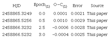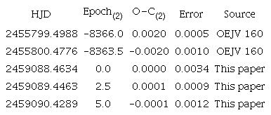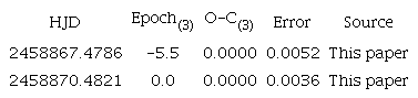During our observations we obtained two ToM’s (Table 3) and the new ephemeris: