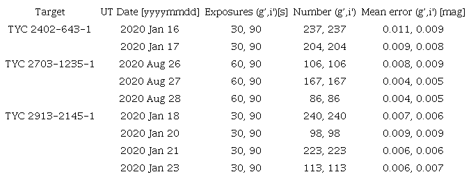 The photometric observations were carried out with Sloan type filters in the g’, i’ bands and the log of CCD photometric observations is presented in Table 5.