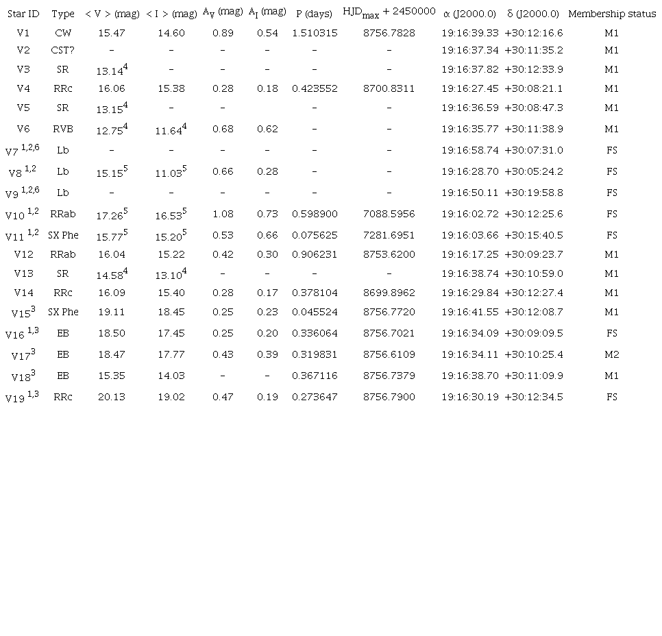 We remark that the red giants V3, V5 and V6 were saturated in our I images and as such we have no I-band photometry.