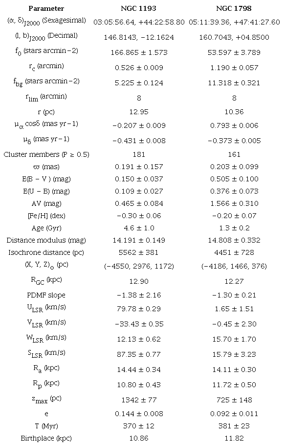 Palabras clave: Clúster abierto y asociaciones: individual: NGC 1193, NGC 1798, galaxia: disco, Hertzsprung-Russell y la magnitud del color.