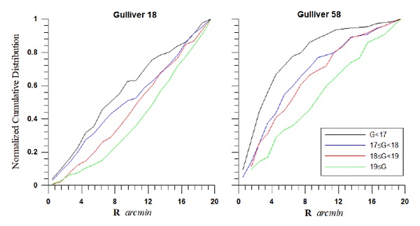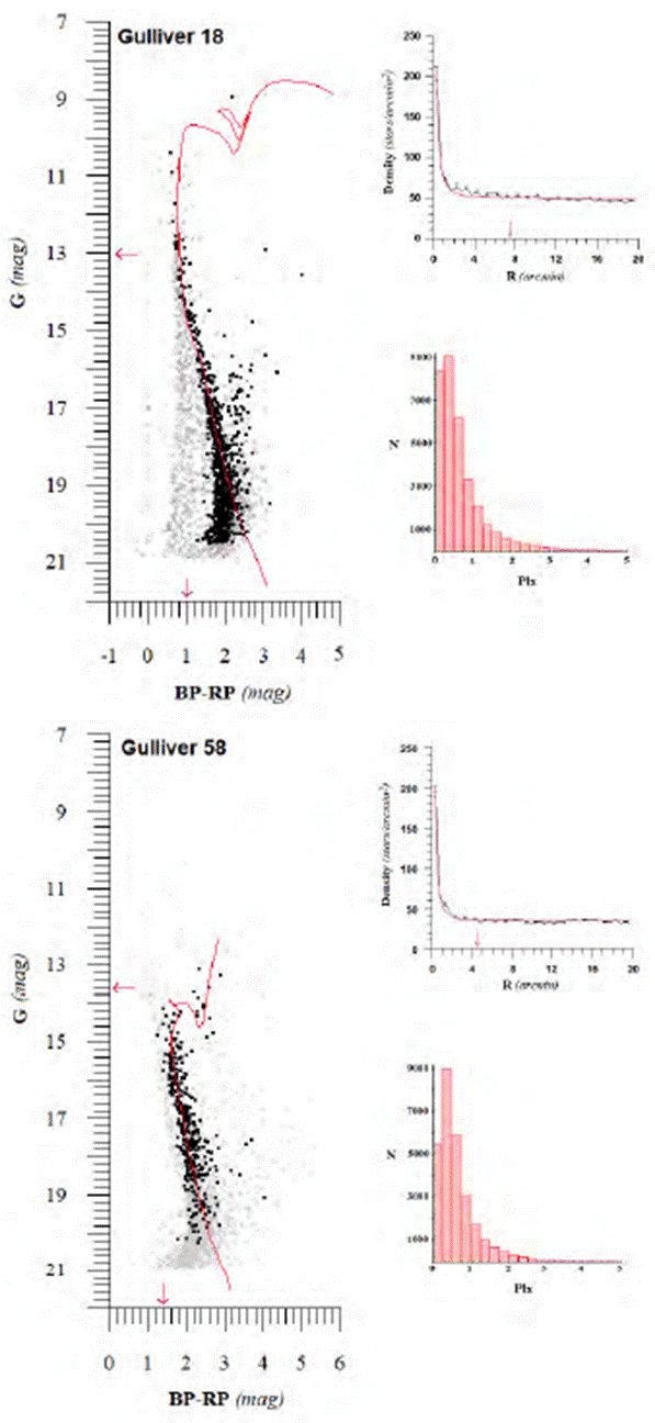 Palabras clave: Bases de datos astronómicos: diversas, galaxias: fotometría, Hertzsprung-Russell y la magnitud del color, Clústeres abiertos y asociaciones: individual: Gulliver 18, Gulliver 58.