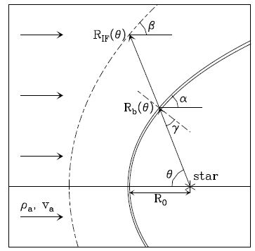 A star with an isotropic wind of mass loss rate ṀW and (terminal) wind velocity vw moving hypersonically at a velocity va through a uniform medium of density ρa produces a double bow shock (with one shock stopping the wind and the second shock pushing the environment). This is shown schematically in Figure 1, as seen in a reference system moving with the star.