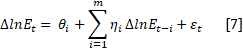 Con base en los trabajos de Edwards (2006), Rose (2007) y Berganza y Broto (2012), se especifica un modelo de volatilidad condicional asimétrico del tipo de cambio para cada una de las economías estudiadas. La estructura del modelo econométrico se describe como: