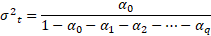 [3]La principal restricción de este modelo es que todas las variables explicativas en un modelo GARCH (q,p), y por lo tanto de un modelo ARCH(q), deben ser positivas