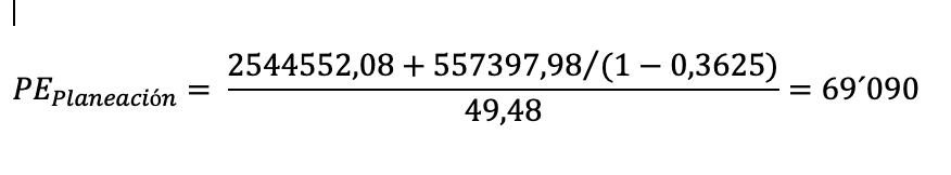 Por su parte, el punto de equilibrio (PE) según la fórmula 2, se logra donde los ingresos totales igualan los gastos totales permitiendo conocer la cantidad mínima de cada modelo que la empresa debe producir para cubrir esos costos. Para ello, se requiere del cálculo del margen de contribución ponderado, el mismo que se obtiene de la suma de los márgenes de contribución unitarios multiplicados por el porcentaje de participación en ventas de cada producto.