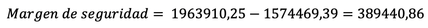 Luego, el análisis del margen de seguridad viene dado por la diferencia entre las ventas reales o presupuestadas y las ventas en el punto de equilibrio, observable en la fórmula 3; este análisis da a conocer la posibilidad de disminución en ventas antes de que se origine una pérdida. Ramírez (2008) recomienda que el margen de seguridad se encuentre por encima del 50% del punto de equilibrio. Siguiendo con el análisis del equipo M5 se observa que su margen de seguridad es $389440,86 al año, y en términos porcentuales representa el 20% (margen de seguridad/ventas). A pesar de no cumplir con el margen de seguridad ideal mantiene un margen que permite generar suficientes utilidades para no entrar en pérdidas.