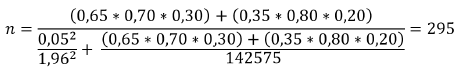 La probabilidad de éxito en el caso de los Millennials está determinada por el porcentaje de personas que consideran a los comentarios en redes sociales como principal factor para escoger un restaurante que aún no conocen. Para la Generación X, la probabilidad de éxito será el porcentaje de personas que consideran a la publicidad boca - oído el principal factor para escoger un restaurante que aún no conocen. El resultado obtenido, da una muestra de 295 personas, correspondiente a la siguiente fórmula: