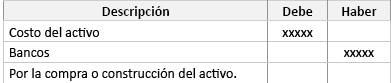 - Costo: es el importe de efectivo o equivalentes al efectivo pagados, o el valor razonable de la contraprestación entregada, para adquirir un activo en el momento de su adquisición o construcción.
