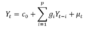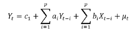 (7)Para la prueba de causalidad de Engle y Granger (1987) se prueba que el evento X es visto como causando el evento Y, entonces el evento X debe preceder a Y (Hamilton, 1994, p.303). De esta forma Hamilton (1994) presenta para esta prueba una ecuación causal no restringida, de la siguiente manera: