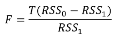 (9)El estadístico de prueba se calcula a partir de la suma de los residuos al cuadrado (RSS) de la ecuación no restringida (10) y la ecuación restringida (11) que solo es válida asintóticamente debido a la presencia de una variable dependiente retrasada en la regresión. De tal forma que el estadístico de la prueba se forma como: