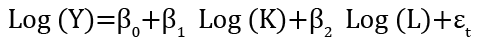 (3)Suponiendo que el progreso técnico (A) sea un residuo. La ecuación (3) se estimará de la siguiente forma: