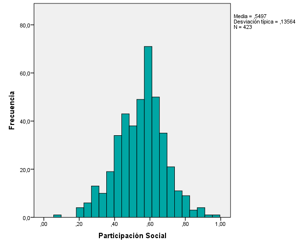 Consequently, the ratio of the intervals 0.20 to 1.0 represents a deviation of 0.13 in social participation compared to the mean of 0.54, showing the relationship between mediation and the perception of participation of the population sample with the collegiate bodies in their transparency and management.