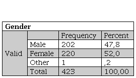 The database contains results from a total of 423 interviewees and 97 variables were evaluated. 5 of these correspond to sociodemographic information and education levels, and the remaining 92 refer to the study of citizen empowerment. Sociodemographic Information: Below is a sample of the spread of sociodemographic information for the 423 interviewees.