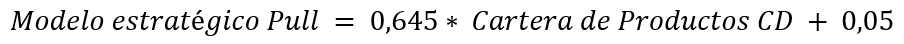 Al cumplir los supuestos (Anexo B. Supuestos Modelo Pull y Push), se aplica una regresión hacia atrás con los 3 elementos que componen el modelo Pull. El estadístico F < 0,05 (0,000) indica que existe relación entre las variables empleadas, en conjunto explican al modelo en un 85,7%. En cuanto a la significancia, con un valor p < 0,05, existe suficiente evidencia estadística para rechazar la Hipótesis Nula y se acepta la Hipótesis Alternativa, sin embargo, cabe recalcar que en el Modelo Pull no afecta el precio ni la promoción en ventas, este varía únicamente en función de la cartera de productos (p = 0,005), entonces, se determina que, por cada incremento de una unidad de producto en el menú, se incrementará la demanda en 0,64 unidades (platillos) en canales directos.