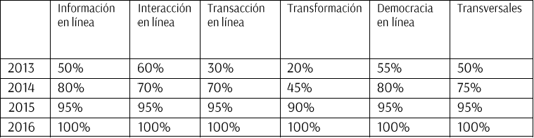 Según la tabla anterior se evidencia que a medida que se van implementando las TIC en el área de gobierno, cada año se observa un aumento con respecto a las estadísticas del año anterior lo que supone una mejoría en todos los factores que intervienen en la consolidación de este nuevo esquema de gobierno.