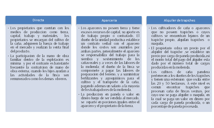 Cadena, D & Acuña, J. (2004). La agroindustria de la panela en la región de la Hoya del Rio Suarez: Bajo el enfoque de desarrollo regional y competitividad. 1990-2002. Universidad Industrial de Santander, Bucaramanga, Colombia.