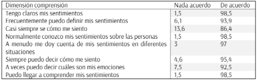 Sin embargo, la claridad emocional estuvo por debajo de la puntuación adecuada, lo cual resalta que los individuos conocen sus emociones y los expresan adecuadamente, pero en ocasiones no identifican la emoción y la respuesta consecuente.