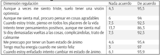 También es relevante decir que al evaluar la dimensión regulación se observó que los colaboradores presentan una regular reparación de las emociones, lo cual traduce en manejo inadecuado de las emociones; sin embargo, en la gran mayoría de las ocasiones siguen siendo positivos, aun que experimenten sentimientos desagradables, con pensamientos positivos. Por otra parte, las personas encuestadas mencionaron que, aunque existan emociones de tristeza, por lo general diseñan pensamientos positivos para conservar una buena energía, lo cual ayuda a cambiar el estado de ánimo, y regular sus estados emocionales.