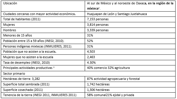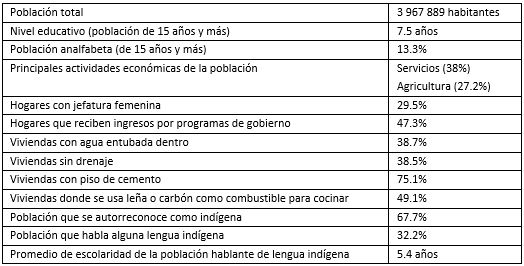 La presente investigación se centra en el Municipio de Santo Domingo Tonalá, Oaxaca, México. Oaxaca es una entidad federativa localizada en el sur-sureste del país. Es un estado caracterizado por la pobreza y marginación. Las condiciones poco favorables de la infraestructura en algunos lugares, así como usos y costumbres han hecho imposible el acceso a la educación y a servicios básicos en algunas comunidades. La tabla 1 muestra los principales datos socioeconómicos del estado.