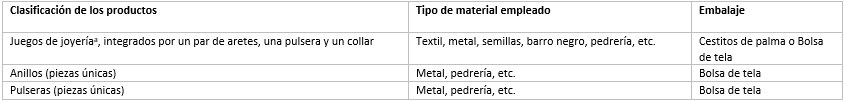 Los Juegos de joyería son los que están elaborados a base de materiales textiles, ya que representan un mayor grado de complejidad, ver tabla 3 e ilustración 1.