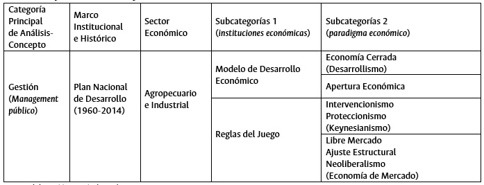 Otro aspecto relevante para este proyecto doctoral se articula desde el contexto teórico del institucionalismo histórico porque: “las instituciones generan y determinan las reglas del juego en sociedad” (North, 1990), en este aspecto la evolución del concepto gestión en función de la planificación estatal en los sectores agropecuario e industrial es clave porque permite comprender los cambios al interior de los dos contextos; Primero, un Estado que permaneció atento al desarrollo instaurado desde 1960 hasta finales de la década de los ochenta bajo una orientación de desarrollo hacia dentro con una economía cerrada para fortalecer el sector industrial. Posteriormente en la década de los noventa el modelo económico se reinventa alrededor de la globalización generando nuevos acuerdos entre el Estado, la sociedad y el mercado en función de su competitividad.