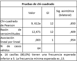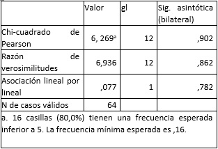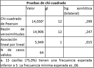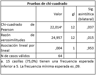 Con un nivel de significancia del 5% y un grado de libertad de 12 según la tabla de valores de chi cuadrado, teniendo un valor límite de 21,026, y de acuerdo al análisis realizado, se observó un chi cuadrado de 22,014, lo cual demuestra que la hipótesis nula para estas dos variables es rechazada.