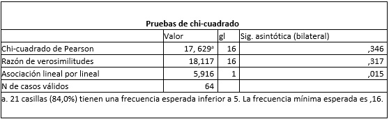 Con un nivel de significancia del 5% y un grado de libertad de 16 según la tabla de valores de chi cuadrado, teniendo un valor límite de 26,296, y de acuerdo al análisis realizado que arrojo un chi cuadrado de 17,629, se demuestra que la hipótesis nula para estas dos variables es aceptada.